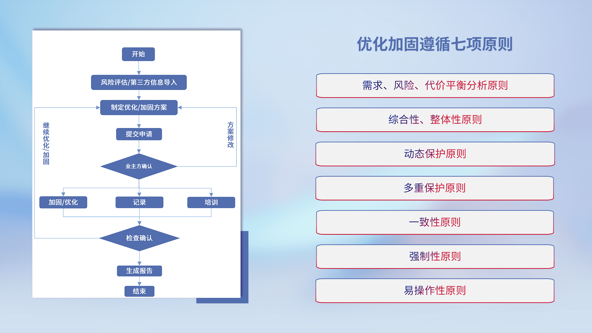 最大程度利用现有资产,,,,对评估发现的问题进行封堵与整改,,,,防止漏洞被利用,,,提升整体网络安全性,,为客户带来高标准的优化加固服务。。。。